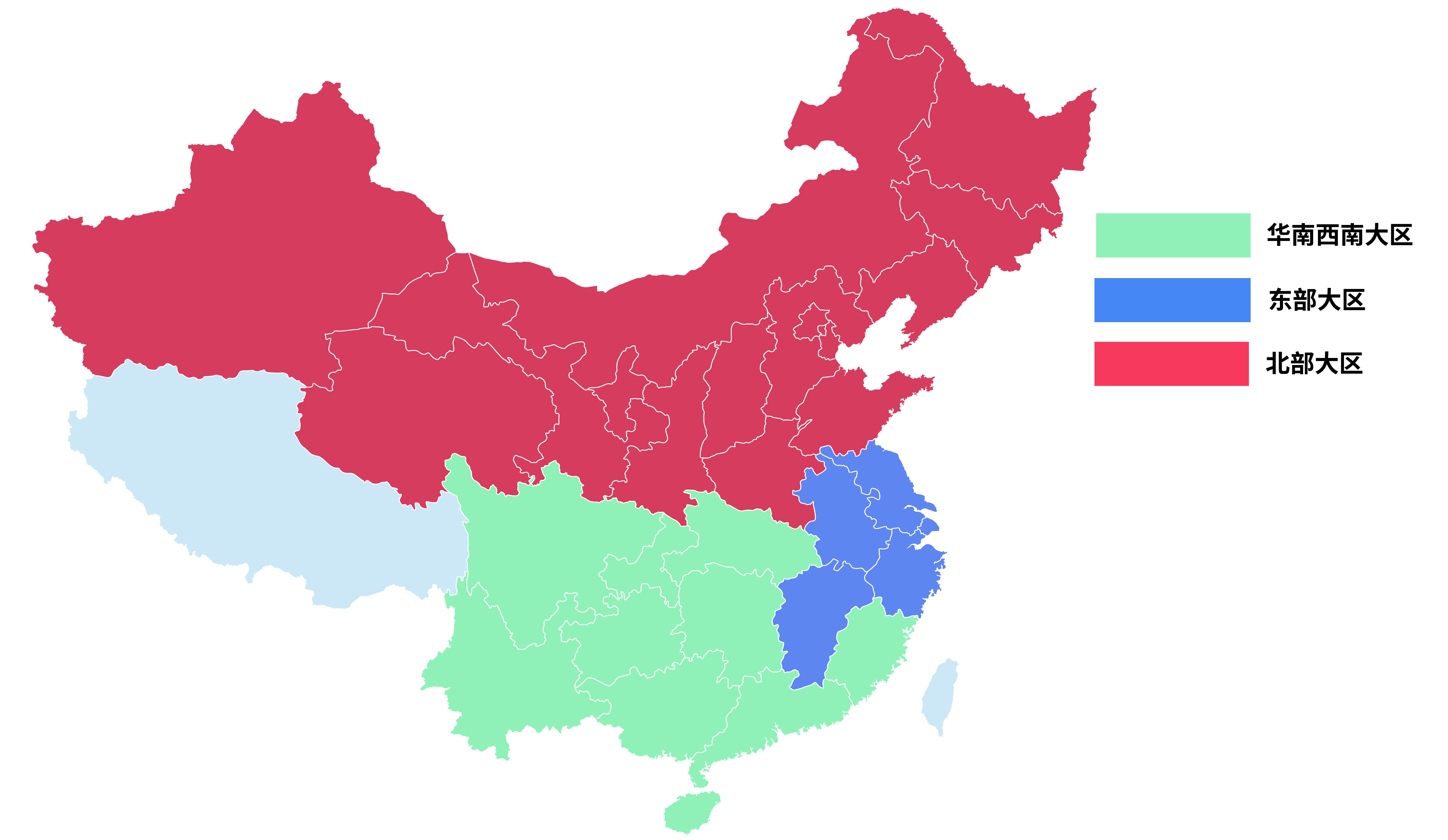 | 华南西南大区 | 重庆、四川、贵州、云南、 湖南、湖北、广东、广西、 福建、海南 |