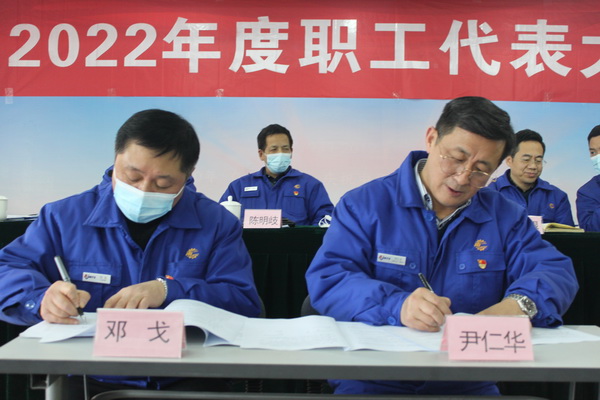 大会表决通过了2021年度工作报告、《工资集体合同》等文件,公司总经理和工会主席分别代表行政方和职工方在会上正式签订了《2022年工资集体合同》。